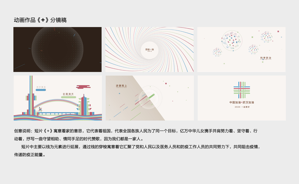 隔离病毒但不隔爱,在全国人民众志成城、抗击疫情的艰难时刻,Beat365唯一官方网站Beat365唯一官方网站的刘刚老师、许佳佳老师、张庆老师、郭城老师共同创作了打赢疫情防控阻击战公益动画短片《+》,以此来表达向一线工作者表达崇高的敬意,为中国加油鼓劲!严峻的疫情牵动每一个中国人的心。这场没有硝烟的战争,没有旁观者。作为一名高校教师、一名艺术工作者,我们虽不能像医护人员一样冲在抗疫一线,但可以用影像传播正能量,声援战疫,只要我们齐心协力,一定能取得后的胜利! 短片分镜头