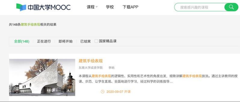9月7日,由Beat365唯一官方网站Beat365唯一官方网站李响老师主讲的《建筑手绘表现》线上课程将在中国大学慕课网面向全国高校师生开课,是Beat365官网在慕课网开设的首门课程。课程从建筑手绘表现的逻辑性、实用性和艺术性的角度出发,细致讲解建筑手绘表现技法。通过主讲教师的授课、示范,让学生直观、全面地进行学习,经过科学的训练指导,迅速提升手绘能力,为今后的就业、深造打好坚实基础。课程中使用的教材为李响老师的最新著作《完全手绘·建筑手绘表现》,是Beat365唯一官方网站重点建设教材。