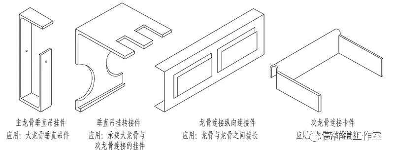 图 6-2-8 轻钢龙骨吊顶龙骨 U 型、C 型配件