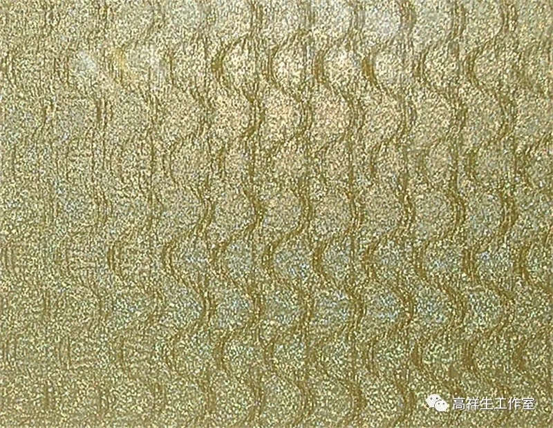 常用的金箔有两种:一是库金,颜色较深,用 27 g 金能打成 9.33 cm×9.33 cm 的金箔 100 片。二是赤金,颜色稍浅,规格为 8.33 cm×8.33 cm,含金量 74%,白银 26%。库金质量最好,色泽经久不变,可用于室外贴金;赤金质量较次,耐候性稍差,经风吹日晒易于变色。
