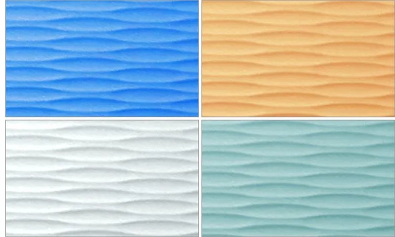具有自重轻、色彩丰富、防火、防潮、耐腐蚀等优点,既有较好的装饰效果,又有很强的反射阳光能力,经久耐用,可用 20 年无需更换,且拆卸下的波纹板仍可重新使用。多应用于商场、酒店、会所、别苏等建筑的墙面和顶棚装饰。