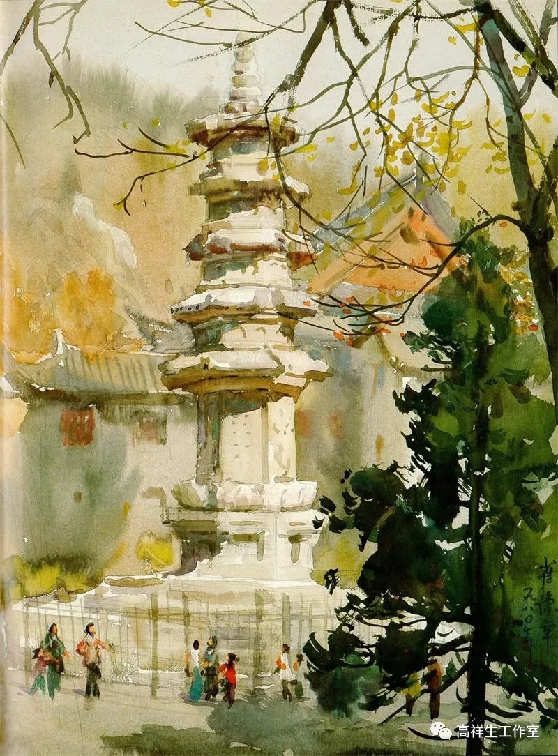 三四十年前,我随崔豫章教授去过重庆、成都、九华山、大理、桂林、北京、上海、福州、杭州、大连、沈阳诸地作水彩画写生,亲眼目睹了崔老师的水彩画方法,亲耳聆听了崔老师对水彩艺术的见解,对崔老师的绘画创作思想感受深刻。现精选《崔豫章水彩画集》中的水彩画作品 11 幅以飨读者,其中有 8 幅水彩画作画时仅我一人在场。现将我对崔老师中年后的写生水彩画方法和绘画思想写成《亦真亦假、真假合一,亦中亦西、西为中用》的短文,并与相应的画作一同发表于《建筑与文化》杂志,愿本文对学习绘画和建筑的后人有所启迪。