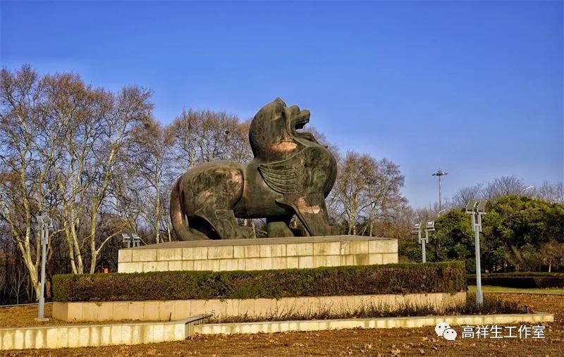 佇立在南京中山门入口的以六朝石刻的辟邪为原型制作的青铜雕刻 高祥生工作室摄于南京六朝石刻
