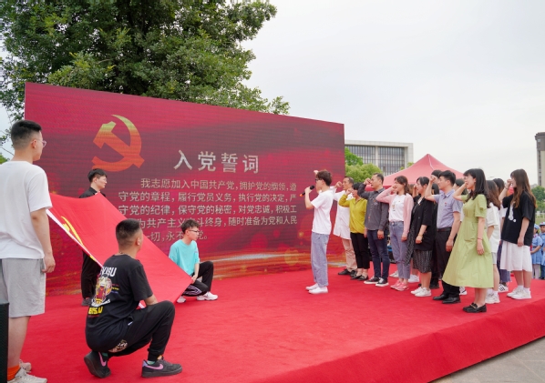 社区党员同志代表、建艺院党总支副书记邵叶鑫以及第二党支部新党员庄重宣誓
