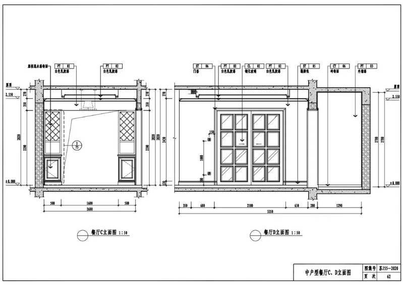中户型餐厅C、D立面图