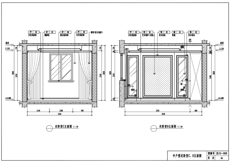 中户型次卧室C、D立面图