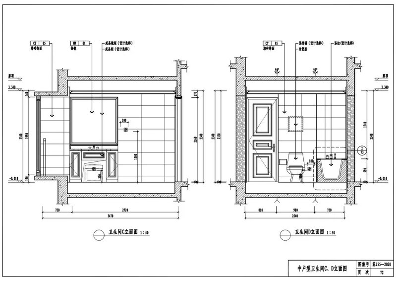 中户型卫生间C、D立面图