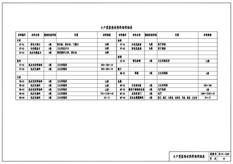 中户型装饰材料终饰明细表