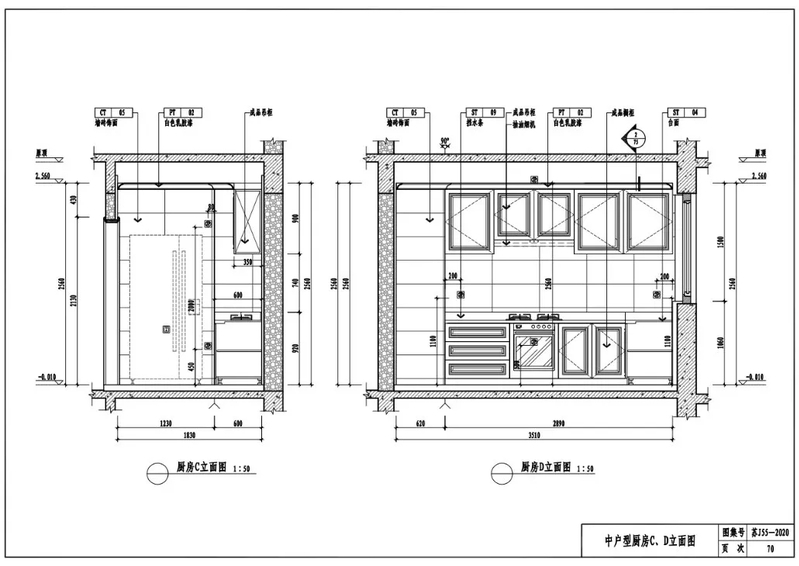 小户型厨房C、D立面图