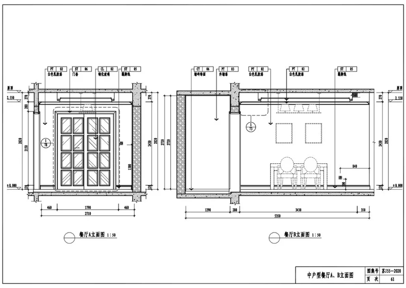 中户型餐厅A、B立面图