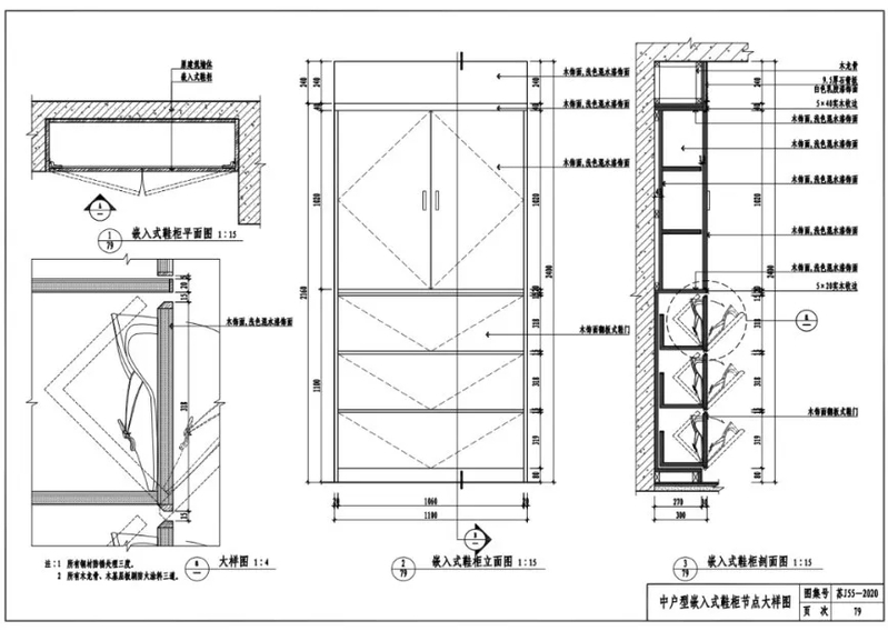 中户型嵌入式鞋柜节点大样图