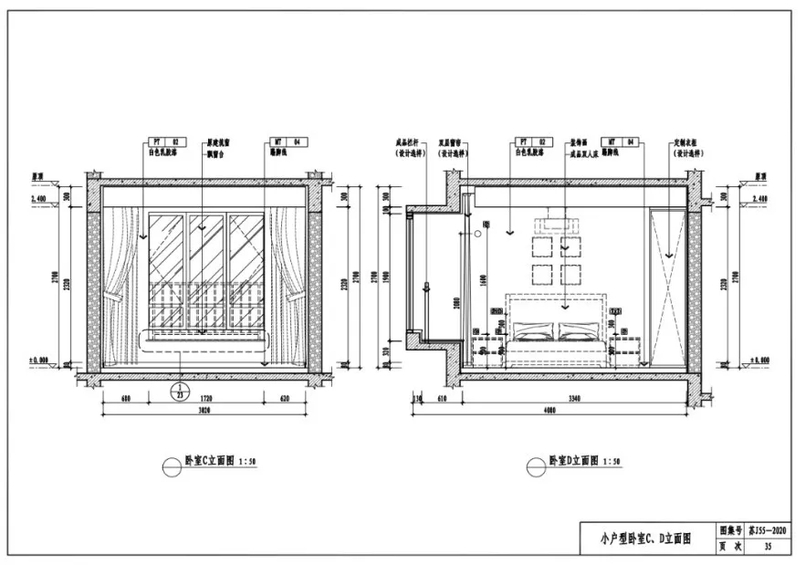 小户型卧室C、D立面图