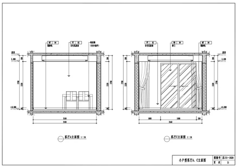小户型客厅A、C立面图