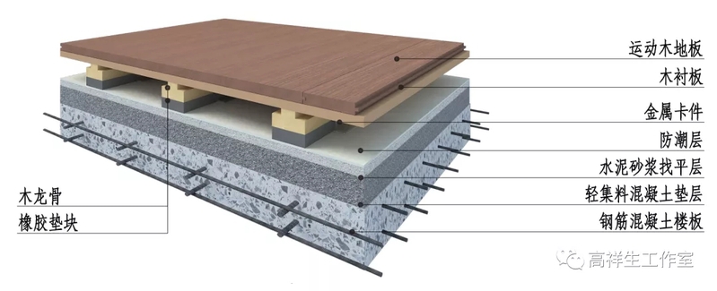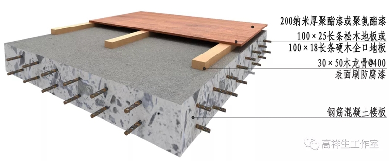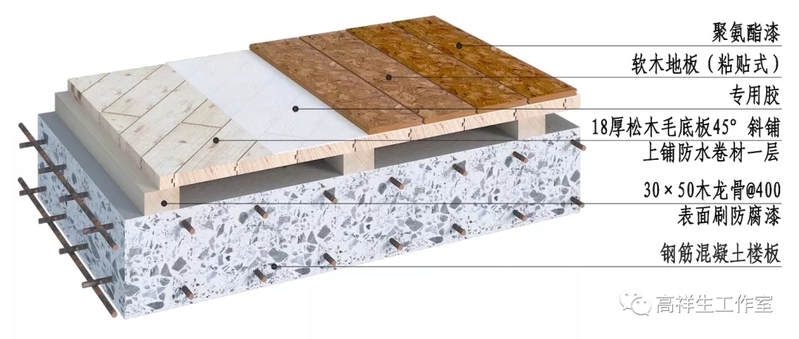 图 12-4-18 平铺强化地板地面三维图(松木毛地板)