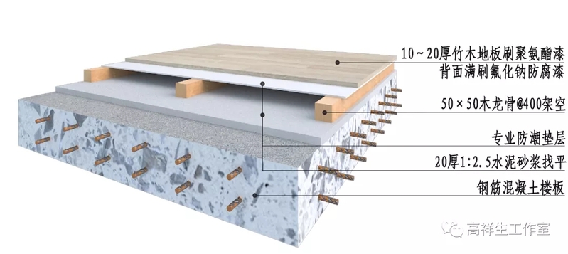 图 12-4-17 平铺强化地板地面三维图(水泥砂浆找平)