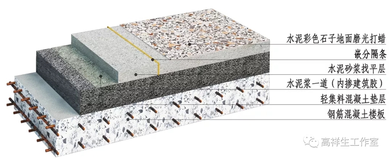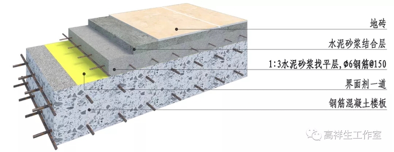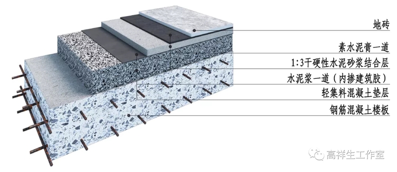图 12-2-6 轻集料垫层地砖地面三维图(素水泥膏)