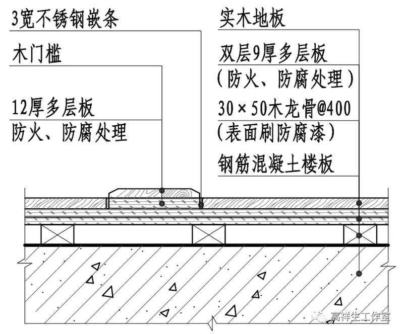 图 12-4-4 架空双层硬木地板地面构造节点图