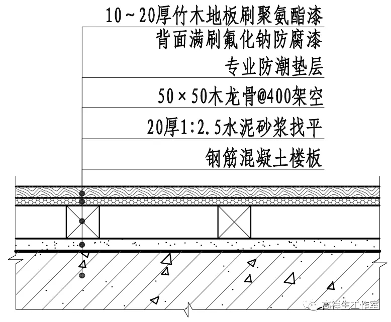 图 12-4-7 架空单层硬木地板地面构造节点图