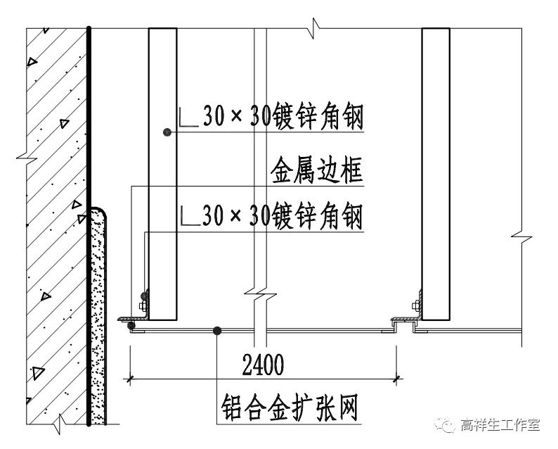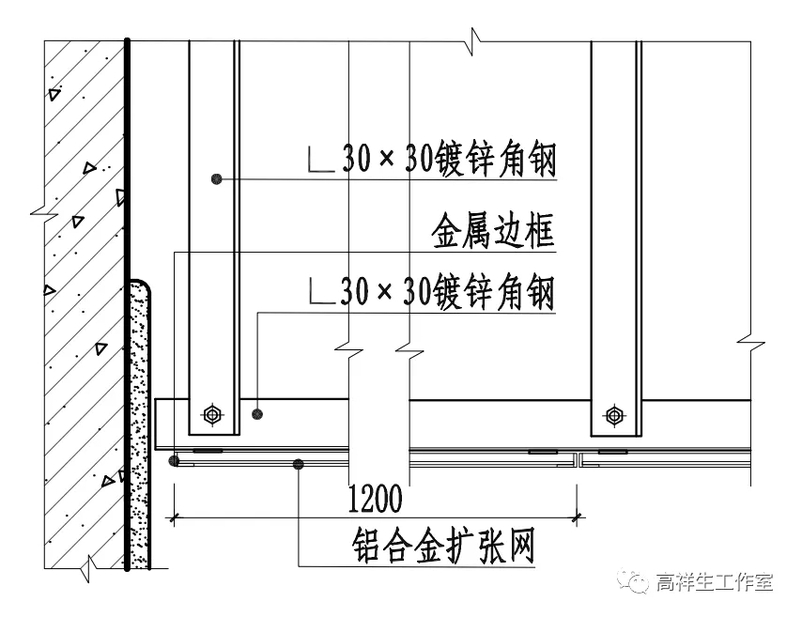 图 13-3-19 铝格栅顶棚构造节点图