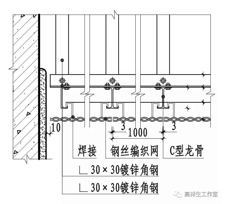 图 13-3-14 铝垂片顶棚构造节点图
