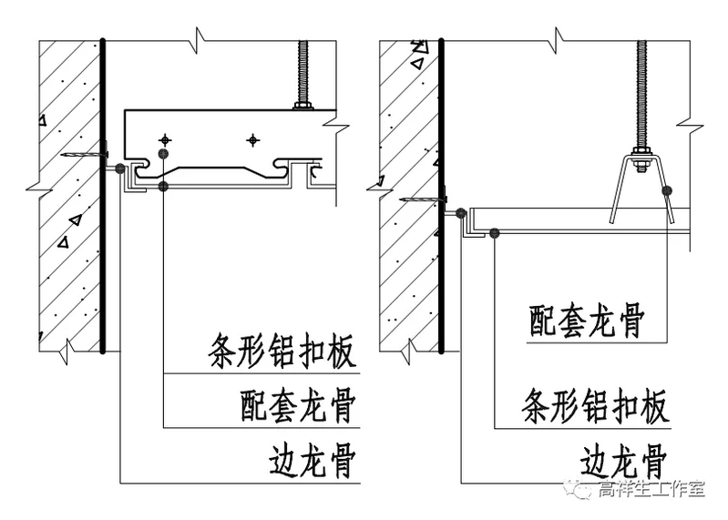 图 13-3-11 条形铝扣板顶棚(二)构造节点图