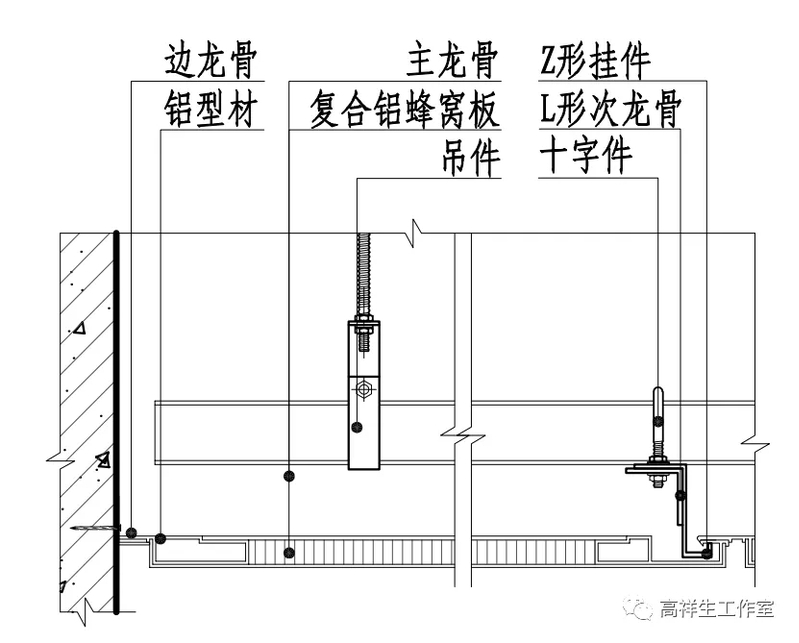 图 13-3-20 铝蜂窝复合板顶棚构造节点图