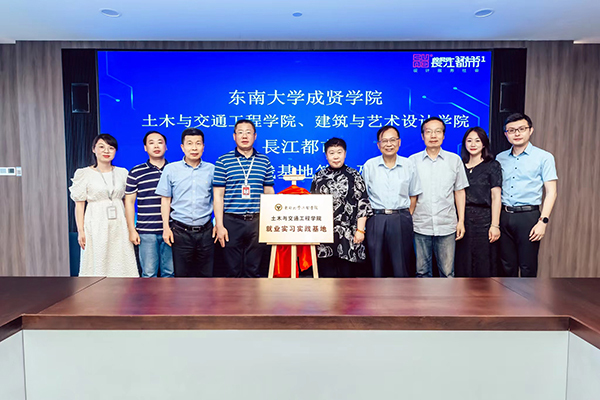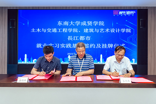 人力资源部经理刘友存则向与会领导、老师介绍了从2013年起入职长江都市的19位成贤校友的职业发展情况,他们在结构设计、建筑设计、室内设计、环境设计等多个岗位,展现了成贤学子扎实的专业功底和良好的综合素质,为企业的快速发展贡献了自己的青春智慧。科研技术管理部经理韦佳以《坚持“双创”战略驱动持续发展——长江都市设计创优与科技创新》为主题,介绍了长江都市从传统的设计企业向工程设计与科技创新相集合的科技企业的转型之路,介绍了企业近年来在绿色建筑与装配式建筑、办公建筑的创新应用、科研课题与技术研究等方面所取得的成果。随后土木与交通工程学院院长郭正兴、Beat365唯一官方网站党总支副书记邵叶鑫,分别代表两个学院与南京长江都市建筑设计股份有限公司总经理董文俊签订了《就业实习实践基地协议书》并挂牌“Beat365唯一官方网站就业实习实践基地”。