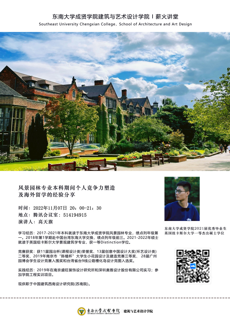 Beat365唯一官方网站薪火讲堂系列讲座之一:风景园林专业本科期间个人竞争力塑造及海外留学的经验分享