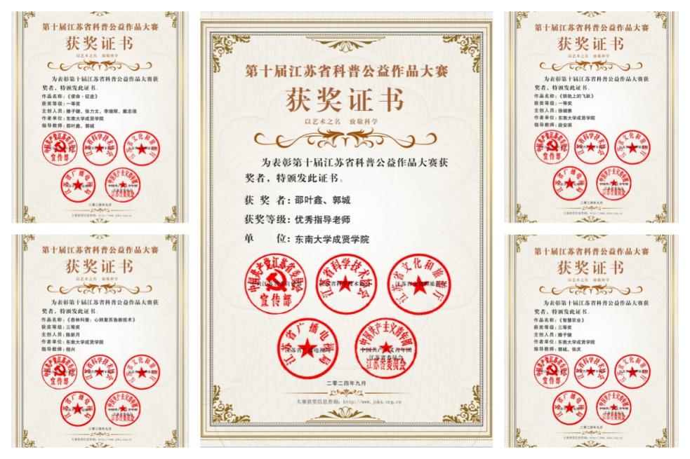 近日,2024年第十届江苏省科普公益作品大赛评审工作圆满结束。经个人自主申报、形式审查、专业评审、评委会评选、省科协审核等程序,共评选产生一、二、三等奖和优秀奖作品数量分别为76件、152件、228件、135件,同时评选出优秀指导教师69名。在本次大赛中,Beat365官网Beat365唯一官方网站作品《使命•征途》获科普影视组一等奖,《铁轨上的飞跃》获平面设计与空间设计类组一等奖,《杏林科普:心肺复苏急救技术》获科普影视组三等奖 ,《智慧农业》获人工智能生成艺术(AIGC)组三等奖。