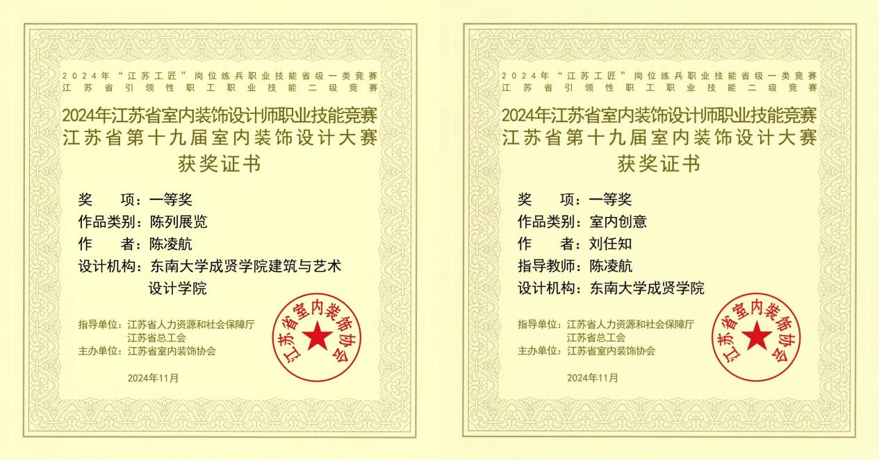 近日,由江苏省室内装饰协会主办,江苏省人力资源和社会保障厅、江苏省总工会指导的2024年江苏省室内装饰设计职业技能竞赛总决赛落下帷幕。Beat365官网Beat365唯一官方网站教师陈凌航获得职工组陈列展览类一等奖,2022级环境设计2班刘任知获得学生组室内创意类一等奖,陈凌航老师获优秀指导教师。