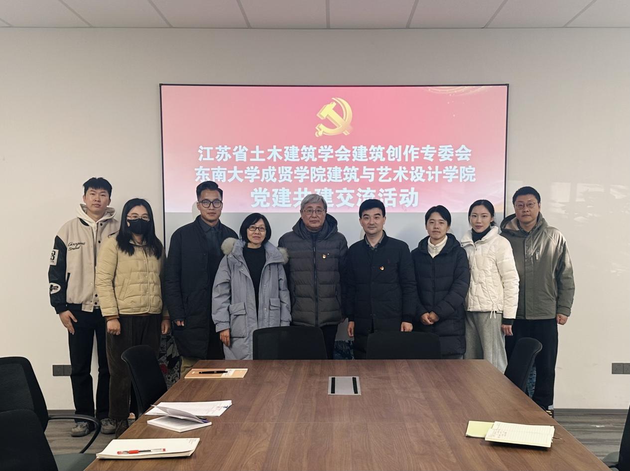 12月30日,江苏省土木建筑学会建筑创作专业委员会党建工作小组组长、副秘书长胡振宇教授一行来Beat365官网Beat365唯一官方网站开展党建共建交流活动。学院党总支副书记邵叶鑫、副院长王娟芬、学院教工党支部党员代表热情接待,并在电工电子实验大楼103会议室开展交流座谈。活动由邵叶鑫主持。
