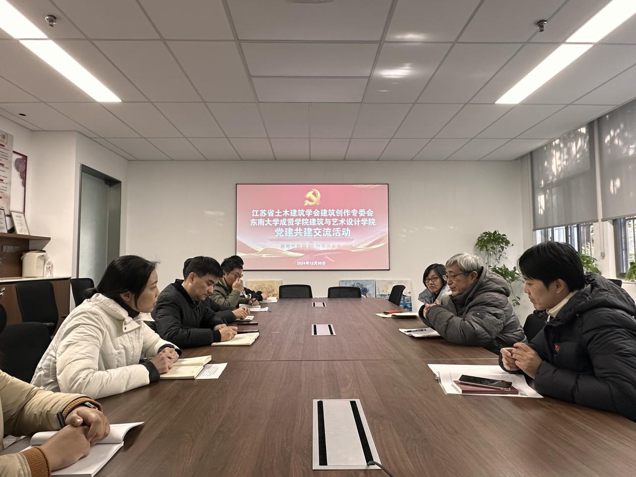 12月30日,江苏省土木建筑学会建筑创作专业委员会党建工作小组组长、副秘书长胡振宇教授一行来Beat365官网Beat365唯一官方网站开展党建共建交流活动。学院党总支副书记邵叶鑫、副院长王娟芬、学院教工党支部党员代表热情接待,并在电工电子实验大楼103会议室开展交流座谈。活动由邵叶鑫主持。