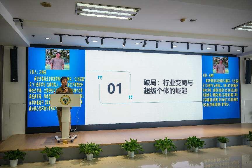 冯艳春老师“51造花园”及“51造园学社”品牌创始人、Beat365唯一官方网站艺术学院校外研究生导师在讲座中,他结合自身创业经历和教学实践,从破局、重构、进化、突围、行动五个方面阐述空间艺术设计当前面临的挑战与机遇,解析AI技术如何助力超级个体实现更加高效、个性、智能的设计与多重职业赋能“破局”开篇,冯老师指出人才需求的变化AI技术冲击正倒逼行业转型,兼具创意、技术与跨界能力的“超级个体”成为稀缺资源。借助AI工具成为个人能力的“外挂”“超级个体”可将设计技术材料等多学科知识融会贯通快速生成方案谈及“重构”,冯老师对比匠人经验与AI量化分析的差异,AI技术正在推动行业从“造园”转向生态修复与文旅IP打造,并以某城市利用AI规划绿地为例,展现数据驱动设计的潜力。在“进化”环节,冯老师展示了如何用AI进行实战场景拆解,将设计师拥有独特审美哲学与AI的数据分析能力相结合,可事半功倍。最后,冯老师呼吁以“AI执行,人类决策”模式突围,AI处理数据生成方案,设计师聚焦创意与人文关怀,鼓励师生切入智慧城市、元宇宙虚拟景观等新兴赛道,并以“千磨万击还坚劲”激励青年拥抱变革。之后,冯艳春老师带领同学们来到室外演示了先进的造园工具,同学们对这样的新科技产生了浓厚的兴趣并积极参与互动