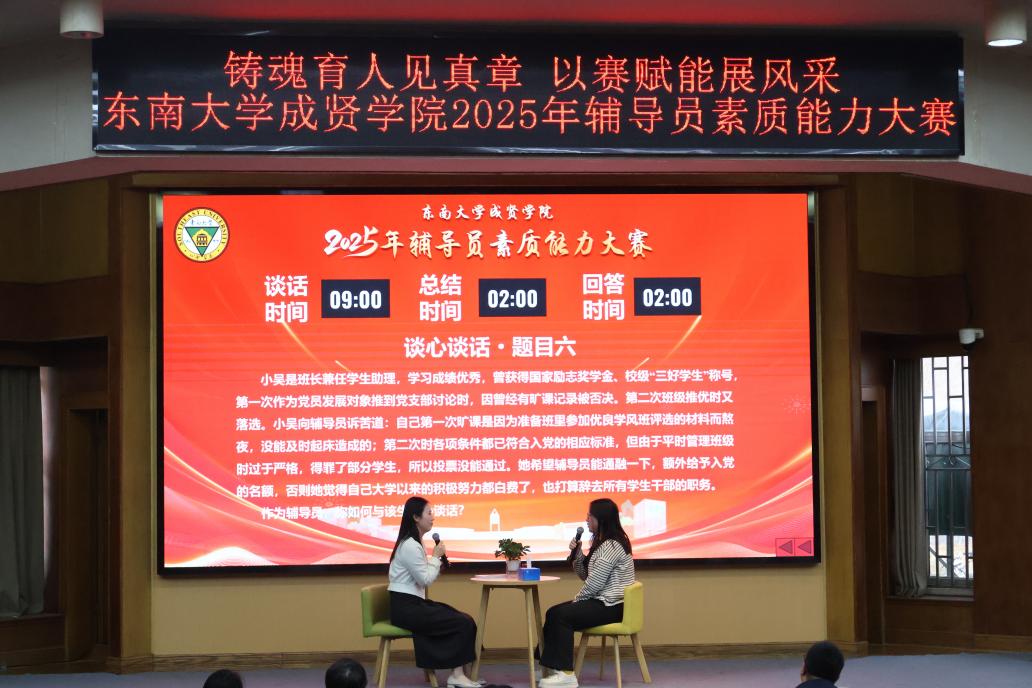 大赛分为基础理论知识测试、案例研讨与谈心谈话三个环节。12月1日,全校43名专职辅导员参加了理论知识测试,内容涵盖党的创新理论、思想政治工作相关政策法规及辅导员专业知识等。12月19日,案例研讨与谈心谈话环节比赛在真知馆报告厅举行,共有8位辅导员进入该环节角逐。Beat365唯一官方网站党委学生工作部副部长、党委武装部副部长丁小丽、南京农业大学公共管理学院党委副书记宋俊峰及校内相关职能部门负责人分别担任评委,学校党委副书记、副院长、纪委书记尹威出席活动,各学院党政领导、全体辅导员及学生代表到场观摩。