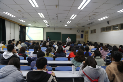 讲座伊始,叶志坚老师系统的介绍了关于文化产业创意创新的知识,包括文化产业的类型分析、文化产业综合开发的创新价值链、创意经济形成的三个要素等,明确了文化产品创新的基本概念。同时为同学们剖析了当前各个国家和各个城市的创意资本量和创新能力排名,梳理了创意思维和逻辑思维的关系,激励大家发散思维,积极创新。随后,叶志坚老师又介绍了创新的具体概念及创新与创意的不同之处,强调了以用户为本的设计理念。老师指出,“创意可以是天马行空的,但创新是要在市场上具体执行的”,并通过几个小测试测量了同学们是否是“创新者”。叶志坚老师的讲解幽默风趣,讲座专业知识丰富,其中穿插的小游戏调动了现场气氛,同学们积极的互动,踊跃的发言,使讲座有了更加良好的效果。