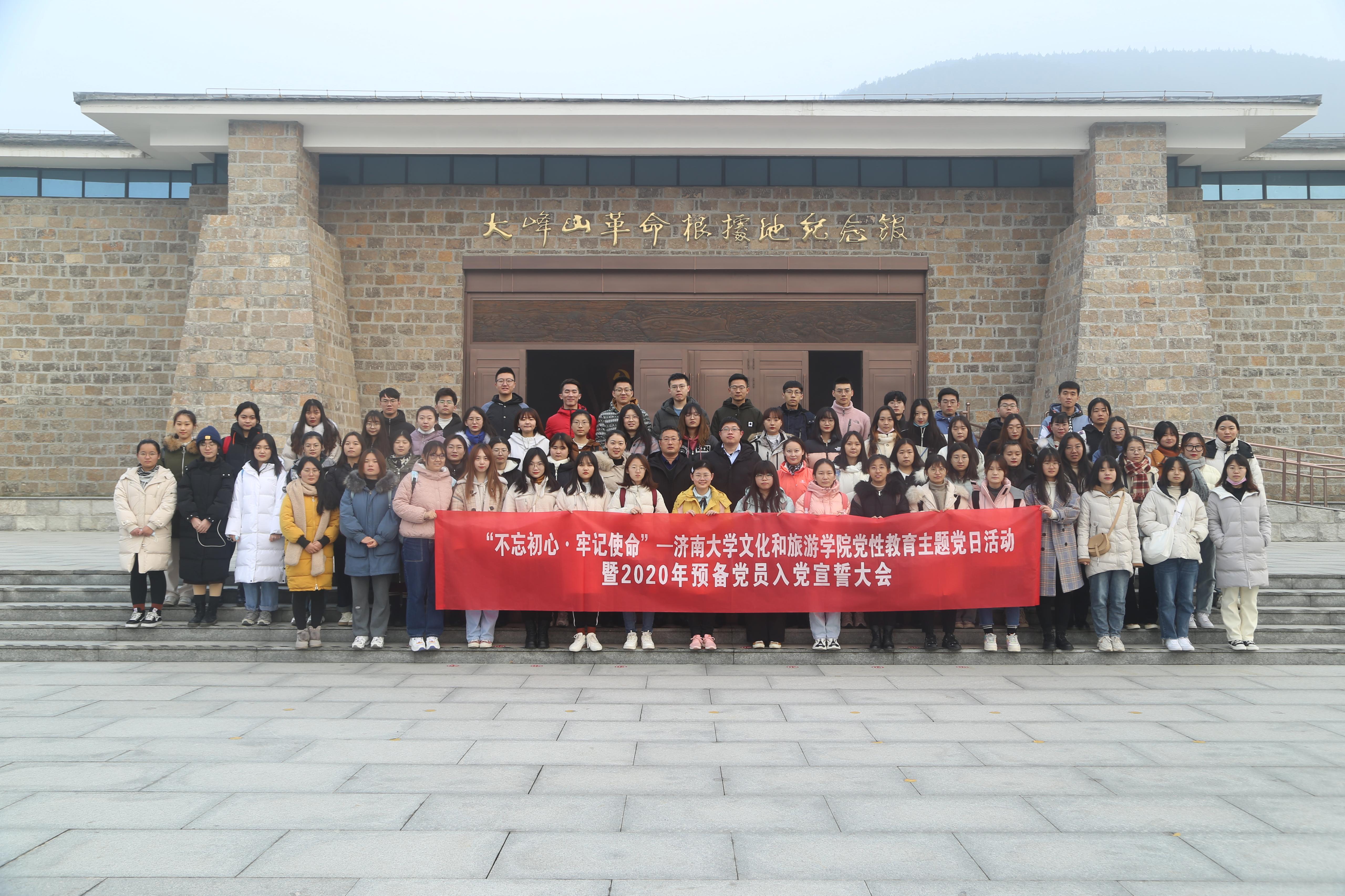 为进一步巩固“不忘初心、牢记使命”主题教育成果,传承红色基因,坚定理想信念,强化党性锻炼,在传承中砥砺责任担当,在奋斗中坚守初心使命,12月11日,beat365英国官方网站党性主题教育暨2020年预备党员入党宣誓大会在长清区大峰山党性教育基地举行,学院67名预备党员、教师党员代表参加大会。