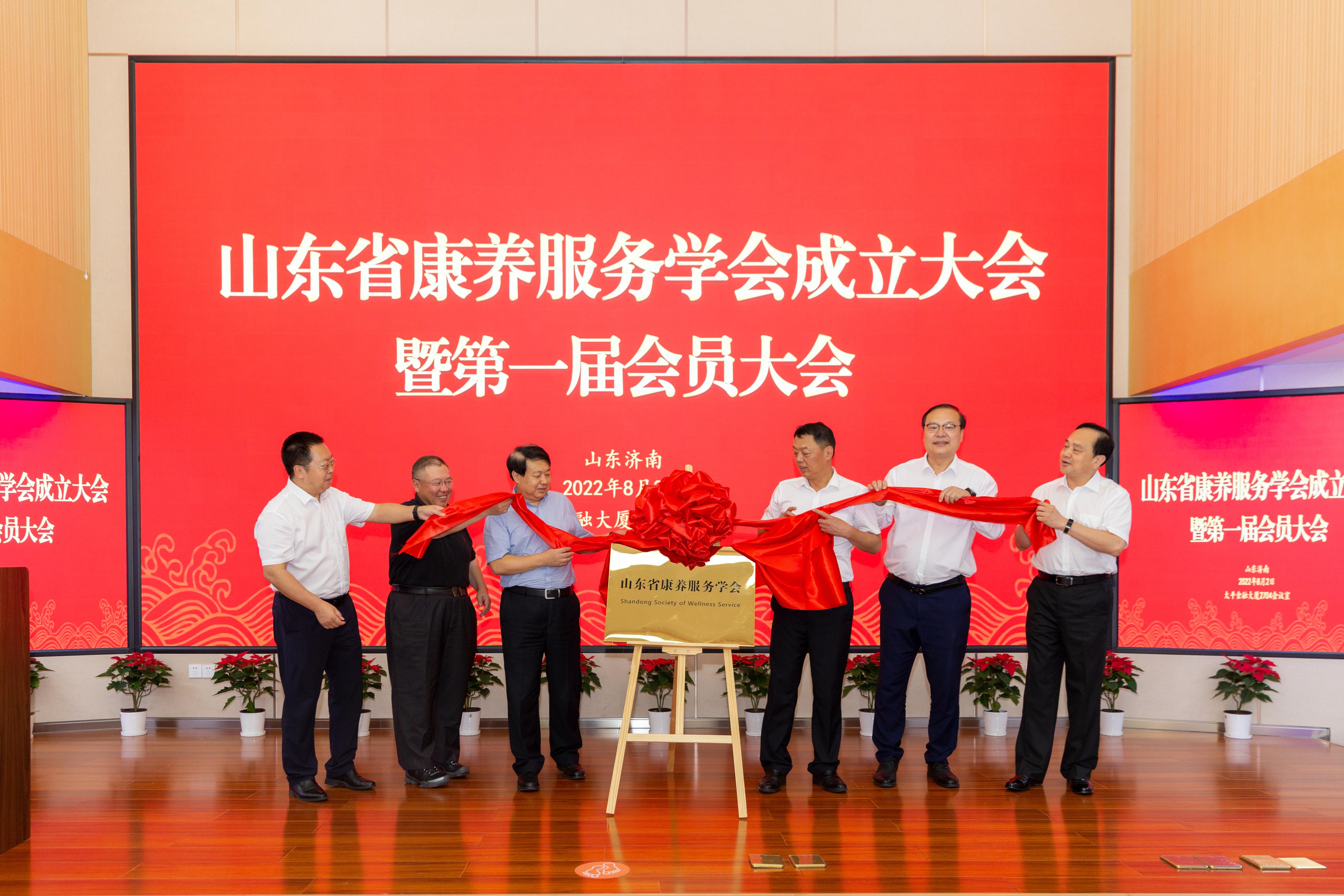 成立大会上,山东省社会科学界联合会党组书记、副主席刘致福、中国国际贸易促进委员会山东省委员会党组书记、会长孟向东、山东省民政厅副厅长张志毅、beat365英国官方网站校长刘宗明、山东省政协常委、经济委员会副主任孙秀江、太平养老保险股份有限公司山东分公司党委书记、总经理孙辉共同为山东省康养服务学会揭牌。