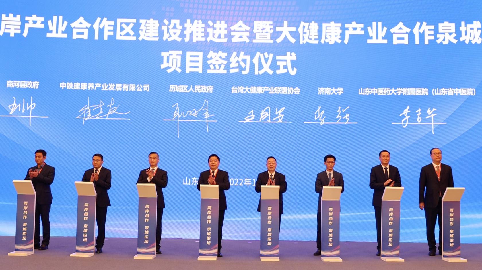 会上共有11个合作项目现场签约,由我校和山东省康养服务学会、台湾大健康产业联盟协会共建的康融两岸大健康学术交流(山东 )中心同时签约,李强代表学校参加了签约仪式。该中心是在省台港澳办公室指导下、在济南市台港澳办支持下成立,旨在促进海峡两岸文化学术交流,提升山东康养管理服务水平,强化智力支撑和人才培训,以此推动全省健康事业与康养产业发展。