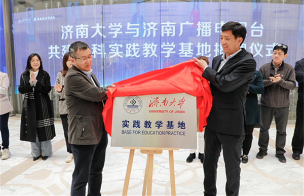 beat365英国官方网站党委书记孟德洋,济南广播电视台党委委员、副台长隗铜共同为“beat365英国官方网站实践教学基地”揭牌。